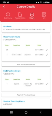 Accedi a un universo di conoscenze direttamente dal tuo dispositivo. Con l'app BASI Pilates, ogni risorsa didattica, dalle preziose note delle lezioni ai video esplicativi e alle letture assegnate, è immediatamente disponibile. Questo ti consente di studiare dove e quando preferisci, mantenendoti sempre aggiornato con i tuoi corsi. Monitorare le tue ore di pratica personale, insegnamento agli studenti e osservazione diventa un processo intuitivo e senza sforzo. L'interfaccia chiara e diretta della BASI Pilates app ti permette di registrare il tuo progresso con precisione, assicurandoti di rispettare sempre i requisiti fondamentali per la certificazione.