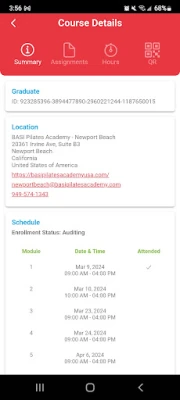 Rendi il tuo arrivo in studio un gioco da ragazzi grazie alla funzione di check-in tramite codice QR. Semplicemente scansiona all'inizio di ogni lezione e la tua presenza sarà registrata automaticamente e in modo impeccabile, eliminando ogni preoccupazione amministrativa. Inoltre, la dashboard personalizzata dell'app BASI Pilates ti offre una visione d'insieme chiara e completa del tuo avanzamento: controlla le ore registrate, tieni d'occhio le scadenze degli incarichi futuri e non perdere mai un annuncio importante, tutto comodamente riunito in un unico luogo intuitivo.
