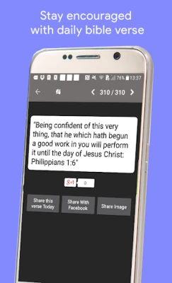KJV Bible arricchisce il tuo percorso spirituale con funzionalità pensate per la quotidianità e la condivisione. Ricevi ogni giorno un Versetto Biblico ispirazionale tramite notifica, un potente spunto per la tua meditazione e crescita personale. Questi versetti, selezionati per la loro forza e saggezza, possono essere condivisi con estrema facilità sui tuoi social media preferiti, come Twitter o Facebook, permettendoti di diffondere ispirazione e connetterti con la tua comunità. KJV Bible offre un insieme completo di strumenti per la tua devozione.