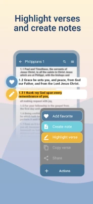 Con la King James Bible KJV, l'esperienza di studio e lettura si eleva a un nuovo livello di praticità. Immergiti nella Parola leggendo offline o lascia che la Bibbia audio KJV ti parli, perfetta per i momenti in cui le tue mani sono occupate ma il tuo spirito è desideroso di ascoltare. Grazie a un potente strumento di ricerca, puoi trovare istantaneamente qualsiasi versetto o passaggio utilizzando riferimenti rapidi o parole chiave. Organizza il tuo studio personalizzando l'esperienza: crea segnalibri, evidenzia i tuoi versetti preferiti e aggiungi note dettagliate per una riflessione più profonda.