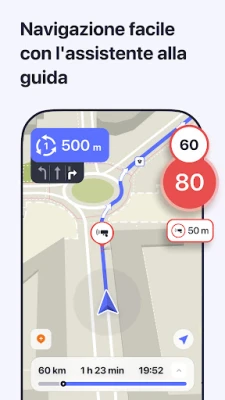 Esplora il mondo con mappe veloci e dettagliate, arricchite da navigazione offline turn-by-turn. Questa soluzione è scelta da oltre 140 milioni di persone e viaggiatori globali per affidabilità e precisione, garantendo un'esperienza di viaggio senza interruzioni. La tua guida essenziale per ogni percorso.