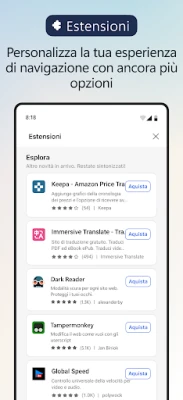 La tua sicurezza e privacy sono la nostra priorità assoluta. Microsoft Edge ti avvolge in una protezione avanzata con strumenti come la navigazione InPrivate, che cela la tua attività dai tracker e impedisce il salvataggio della cronologia su Microsoft Bing o l'associazione al tuo account Microsoft. Difenditi attivamente da phishing e malware grazie a Microsoft Defender SmartScreen, blocca gli annunci indesiderati con AdBlock Plus e ricevi avvisi tempestivi sul dark web per le password salvate. Oltre alla sicurezza, scopri un approccio più intelligente agli acquisti: confronta i prezzi, consulta la cronologia e applica coupon integrati per massimizzare i tuoi risparmi. E con Microsoft Rewards, trasforma i tuoi acquisti in opportunità di cashback presso i rivenditori partecipanti. Microsoft Edge è più di un browser: è la tua fortezza digitale e il tuo alleato per un'esperienza online senza compromessi.