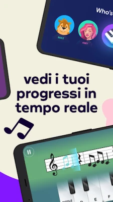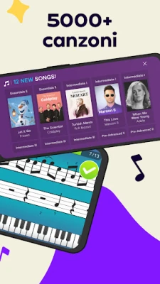Inizia il tuo viaggio musicale con Simply Piano, l'applicazione che rende l'apprendimento del pianoforte accessibile e divertente per tutti, indipendentemente dall'età o dal livello di partenza. Scopri un repertorio sterminato che spazia dalle hit contemporanee come Imagine, Chandelier e All Of Me, ai classici intramontabili di J.S. Bach. I nostri percorsi didattici guidati sono pensati per ogni gusto e abilità, accompagnandoti passo dopo passo dalle basi della lettura musicale fino alla padronanza delle due mani. Non hai un pianoforte tradizionale? Nessun problema! Simply Piano trasforma il tuo dispositivo in una tastiera virtuale sensibile al tocco, permettendoti di iniziare a suonare immediatamente.