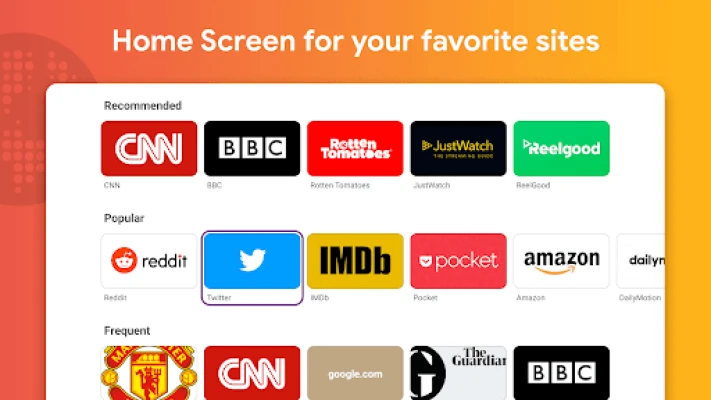 L'interfaccia intuitiva di Web Browser rende la navigazione un gioco da ragazzi. La schermata principale ti mette a portata di telecomando tutti i tuoi siti preferiti: aggiungili con un semplice tocco o riprendi la navigazione dai link visitati più di recente o più spesso. Goditi testi chiari grazie alla funzione zoom e immergiti in video con una riproduzione ottimizzata. Per una maggiore privacy, la modalità in incognito è sempre disponibile, e le funzionalità di ricerca e input vocale rendono l'accesso alle informazioni incredibilmente rapido. La libertà è garantita, con pieno accesso a tutti i contenuti web e la possibilità di visualizzare anche quelli protetti, supportando persino tastiere esterne per chi lo desidera.
